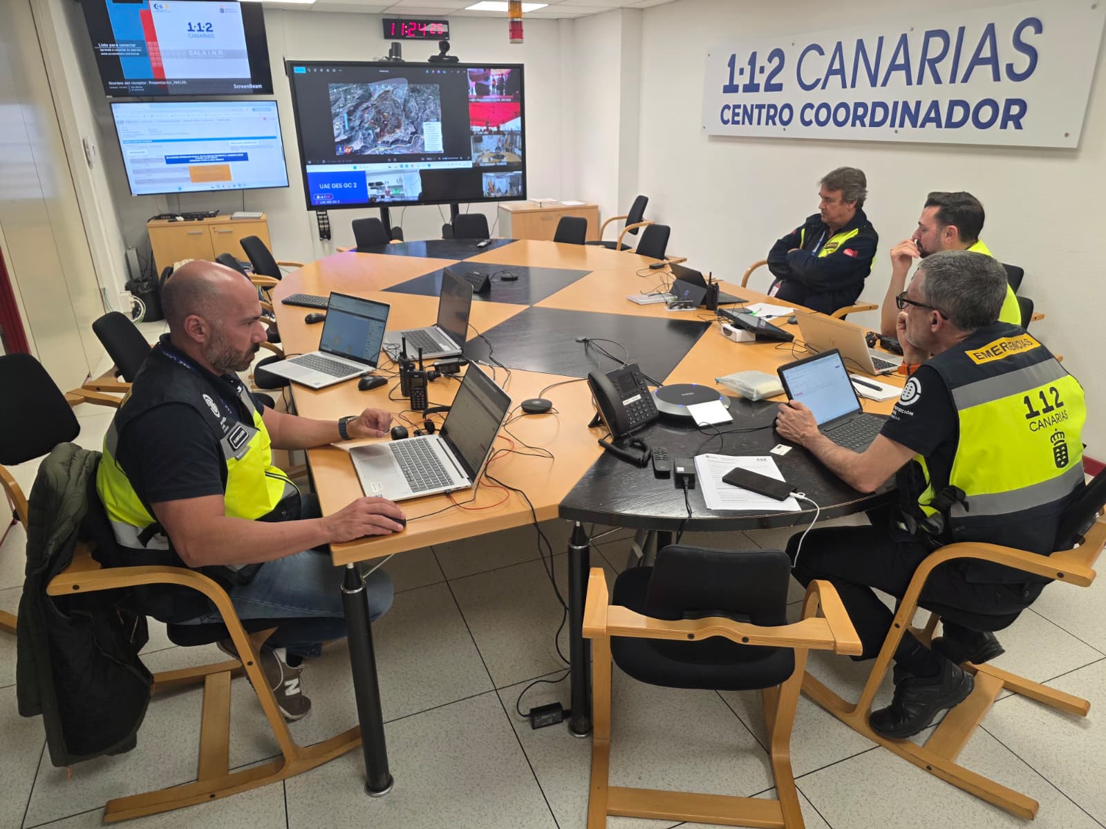 Organizado a través de la Dirección General de Emergencias, el ensayo no solo contó con la intervención de recursos de la comunidad autónoma o las corporaciones locales, sino que incluyó también la participación de medios de la administración estatal como la Guardia Civil, junto a equipos de otras instituciones como Cruz Roja Española y los colegios profesionales de Trabajo Social, Psicología y Veterinaria en Las Palmas.