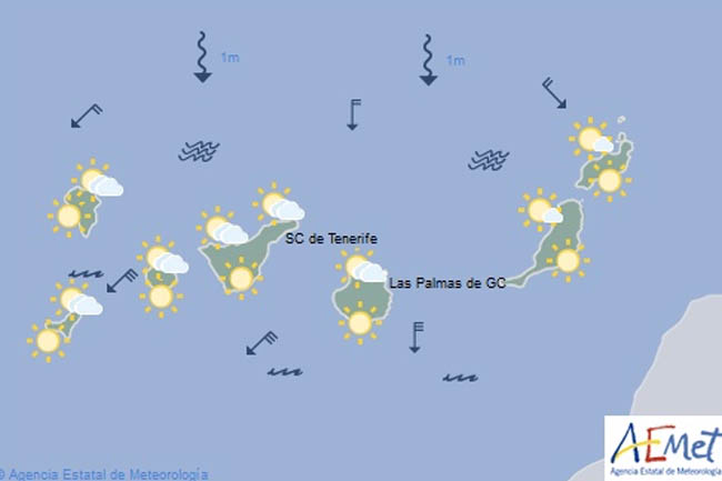 Las previsiones meteorológicas para este jueves en La Palma apuntan a la existencia en el Norte y Nordeste, por debajo de unos 800 metros, de intervalos nubosos, con amplios claros en horas centrales. En el resto, poco nuboso a despejado.