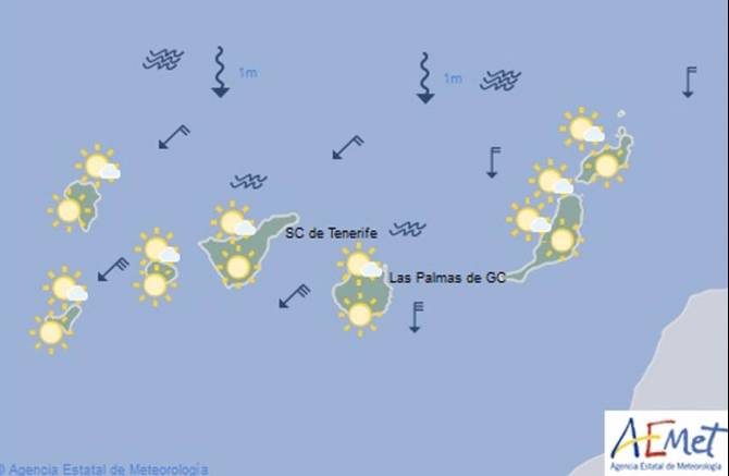 Las previsiones meteorológicas para la Isla apuntan al predominio de cielos poco nubosos o despejado, alternando con algún intervalo nuboso en el litoral norte durante la madrugada y últimas horas.