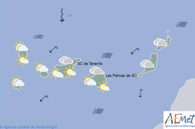 Las previsiones meteorológicas para la isla de La Palma este miércoles apuntan a que en el Norte y Nordeste, estará nuboso tendiendo durante la mañana a intervalos nubosos. En el resto poco nuboso con algunos intervalos por la tarde al Oeste.