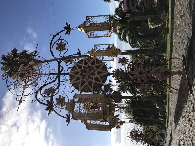 En la jornada de hoy se continúa con la instalación del resto de arcos hasta sumar los trece que representan a cada uno de los barrios del municipio, además de la realización de los tradicionales pasillos, alfombra y tapiz elaborados a mano con productos naturales por las diferentes personas implicadas en este arte ancestral.