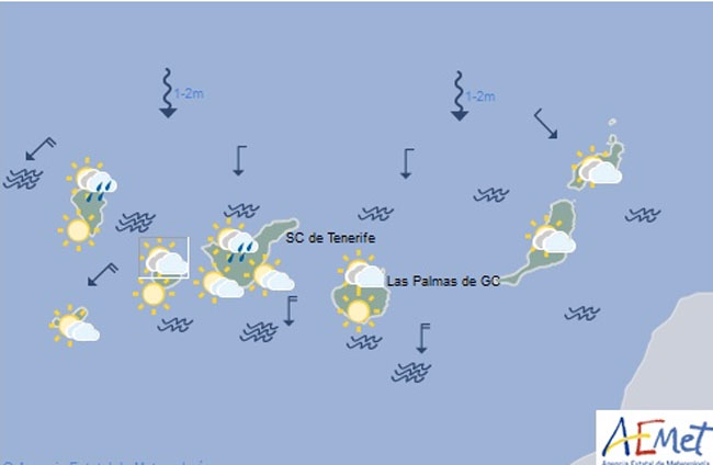 La previsión meteorológica para este fin de semana en La Palma apunta a la existencia, en el Norte, de cielos nubosos con probabilidad de lluvias débiles, ocasionales y dispersas durante la primera mitad del día, se abrirán claros por la tarde; en el resto de vertientes, intervalos nubosos.