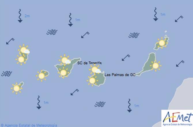 El viento soplará del Nordeste de 25 a 35 kilómetros por hora, más intenso en costas Noroeste y Sureste.