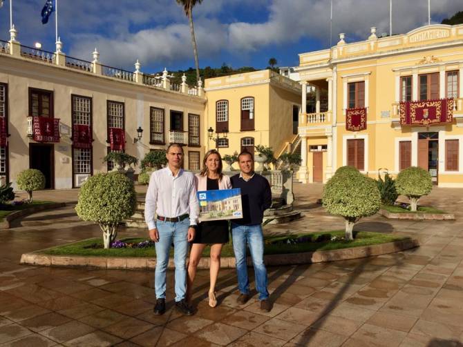El alcalde de Villa de Mazo, José María Pestana, y el concejal de Desarrollo Local, Diego Brito, han explicado la importancia que tiene para la localidad macense que una imagen representativa pase a formar parte del catálogo de CaixaBank, donde su clientela puede elegir cómo personalizar sus tarjetas.