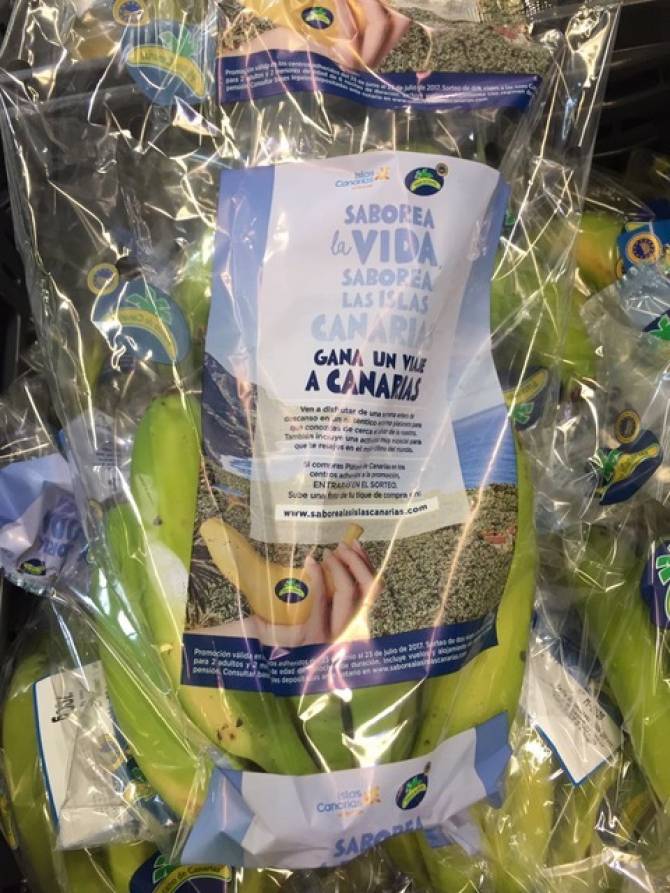 La Asociación de Organizaciones de Productores de Plátanos de Canarias (ASPROCAN) y Promotur Turismo de Canarias, entidad dependiente de la Consejería de Turismo, Cultura y Deportes del Gobierno de Canarias, ponen en marcha una promoción con el doble objetivo de promover la marca turística del archipiélago en el mercado peninsular aprovechando la distribución de la fruta canaria, así como incentivar la venta de plátano durante el verano.