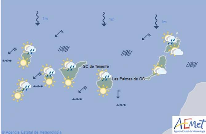 Temperaturas en descenso, siendo ligero en costas y más acusados en medianías y zonas altas, situándose entre 24 y 20 grados centígrados.