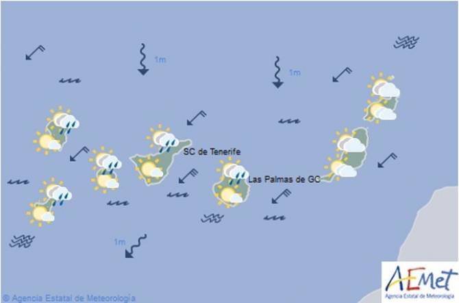 Las previsiones meteorológicas para este viernes apuntan a que en el Norte y Nordeste de la isla, por debajo de unos 1200-1300 metros de altitud, predominarán los cielos nubosos, disminuyendo a predominio de cielo poco nuboso por la tarde; en el resto, poco nuboso a despejado.