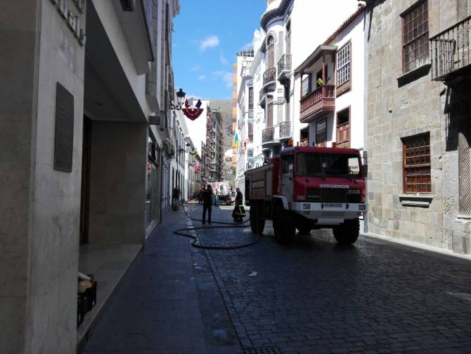 A las 10:00 horas de este sábado se ha dado por controlado definitivamente el fuego que durante la madrugada de esta jornada ha calcinado gran parte de una casona antigua de las calles Álvarez de Abreu, Blas Simón y O'Daly.