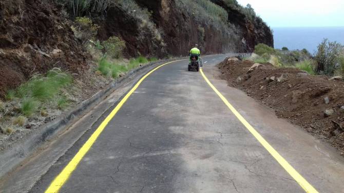 La Consejería de Infraestructuras del Cabildo de La Palma reabre al tráfico la carretera LP-102 de Martín Luis, en Puntallana, de forma limitada tras el derrumbe del talud que se produjo el pasado mes de mayo en el punto kilométrico 1,2 que afectó a la vía y obligó a acometer obras de emergencia.