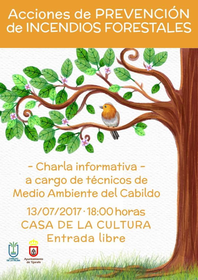 La concejalía de Medio Ambiente del Ayuntamiento de Tijarafe, coincidiendo con los meses de verano, ha organizado un programa de actividades formativas de prevención en incendios forestales. La primera acción, a cargo de técnicos del Cabildo de La Palma, tendrá lugar este jueves 13 de julio, a las 18:00 horas, en la Casa de la Cultura José Luis Lorenzo Barreto.