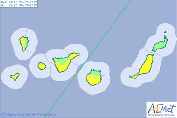 Viento del nordeste de 20 a 25 kilómetros por hora en costas con brisas en horas centrales, algo más intenso al final de la tarde; en medianías, de nordeste a componente este disminuyendo a flojo por la tarde.