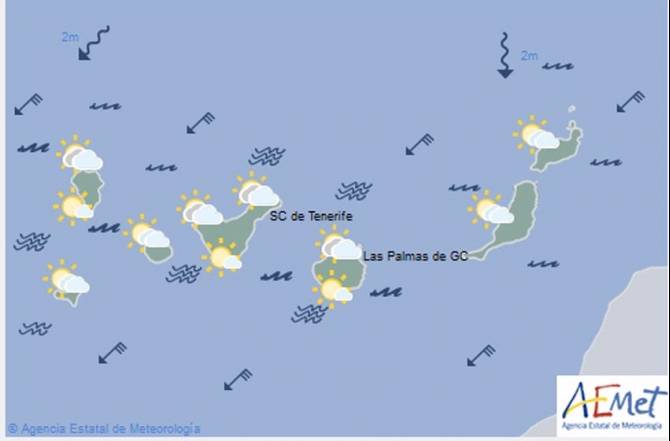 Viento del nordeste moderado a fuerte, en especial en medianías orientadas al sudeste y noroeste.