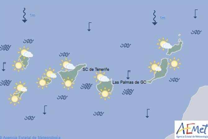 Temperaturas en ligero descenso, pudiendo ser hasta descenso notable de las máximas en medianías y zonas altas, situándose entre 25 y 20 grados centígrados.