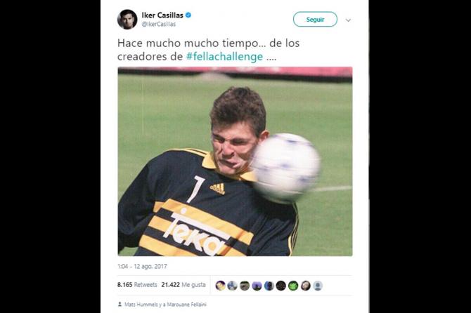 Ahora, tanto tiempo después, Casillas recupera esa fotografía en su cuenta de Twitter para sumarse a la moda que comenzó Marouane Fellaini, el jugador del Manchester United, el pasado martes.