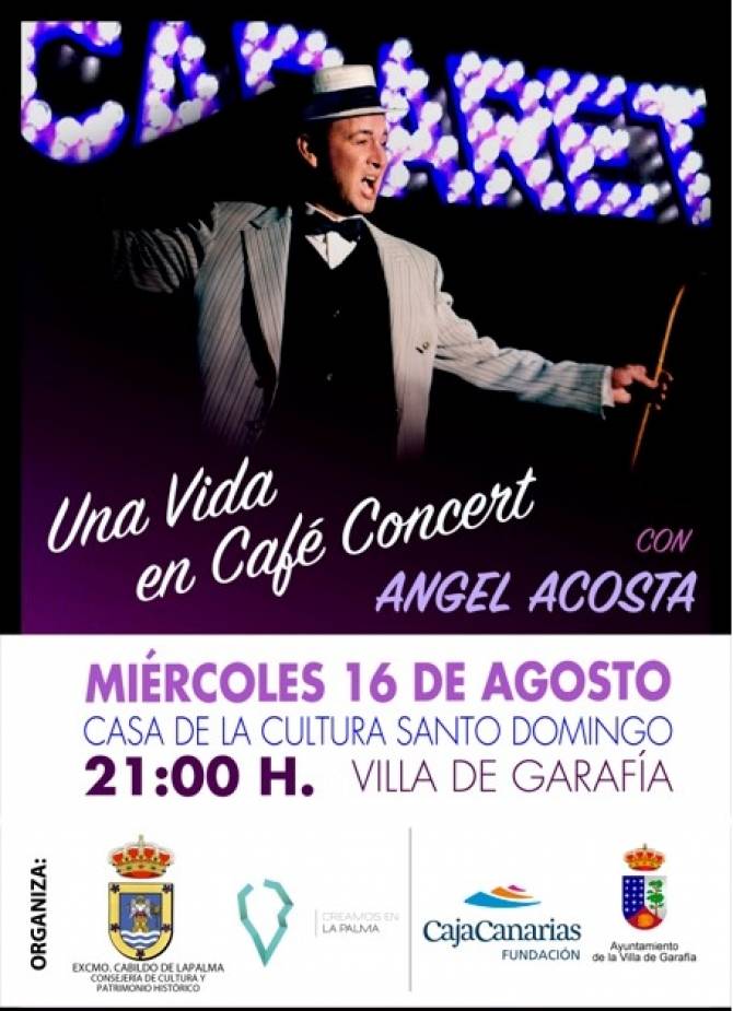 El Cabildo de La Palma organiza este miércoles, 16 de agosto, el espectáculo Una vida en café concert, una propuesta del actor canario venezolano Ángel Acosta, que se sustenta en la copla, el tango y el bolero para narrar a modo de canción historias y vivencias propias.
