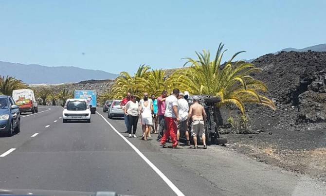 Un hombre de 76 años y una mujer de 66 han sufrido heridas de diversa consideración tras volcar el vehículo en el que viajaban por la LP-213 de Los Llanos de Aridane.