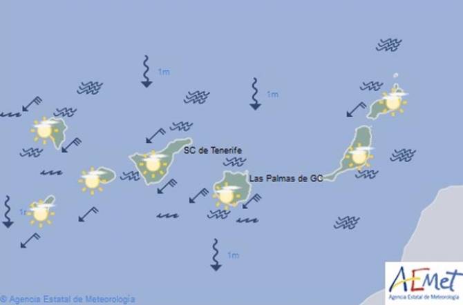 Viento del Nordeste, moderado a fuerte al principio en el Noroeste y Sureste, disminuyendo por la tarde.