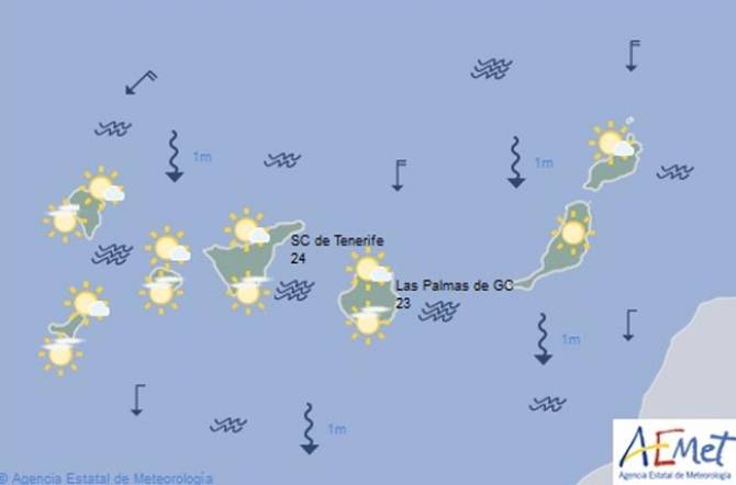 Las previsiones meteorológicas para este viernes apuntan al ligero descenso de temperaturas en la Isla excepto en las cumbres, donde es probable que se alcancen de 34 a 36ºC en cumbres, y de forma más local en medianías del Oeste.