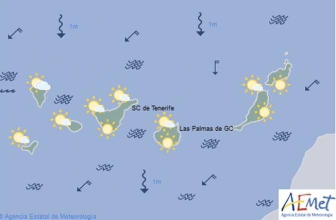 Temperaturas en descenso, más acusados en medianías y zonas altas, situándose entre 27 y 22 grados centígrados.