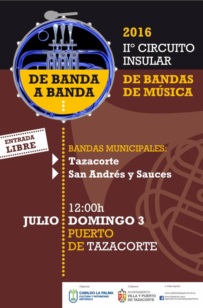 El II Circuito de Bandas Municipales de Música De Banda a Banda, que organiza el Cabildo Insular de La Palma a través de la Consejería de Cultura y Patrimonio Histórico, llega este domingo, 3 de julio, a Tazacorte.