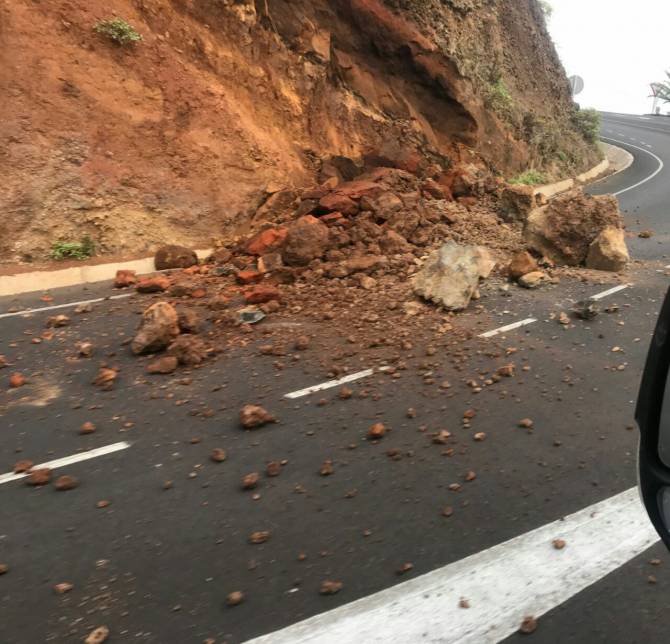 Un desprendimiento en la carretera LP-1 en el acceso desde el Sur al municipio de Barlovento ha provocado retenciones de tráfico al afectar a prácticamente la totalidad de la vía.