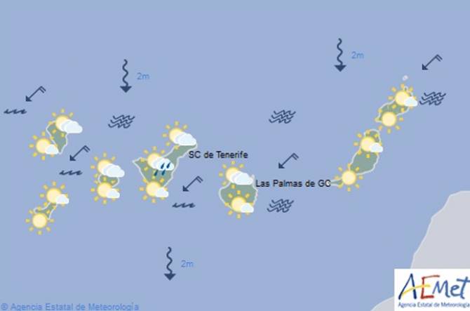 Las previsiones meteorológicas para este fin de semana en La Palma apuntan a la existencia de cielos nubosos en el norte y nordeste, por debajo de unos 700 metros de altitud, aumentando a nuboso al final de la tarde, cuando existe baja probabilidad de lluvias débiles y dispersas.