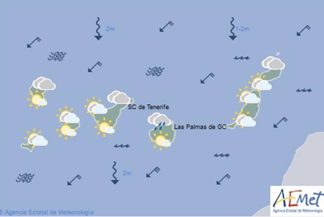 La previsión meteorológica para este domingo en la isla apunta a que en el norte y nordeste, habrán cielos nuboso o cubierto pasando a intervalos nubosos en la segunda mitad del día con alguna lluvia débil, más probable por la tarde.