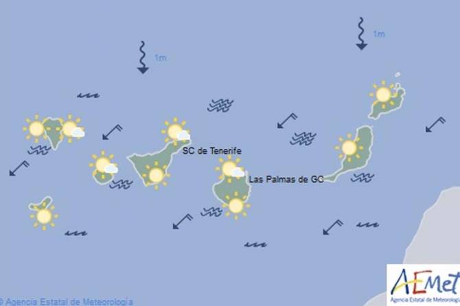 La previsión meteorológica para la isla en este martes apunta a que los cielos estarán poco nuboso o despejado en general, con algunos intervalos de nubes bajas por debajo de unos 600 metros en la costa nordeste.