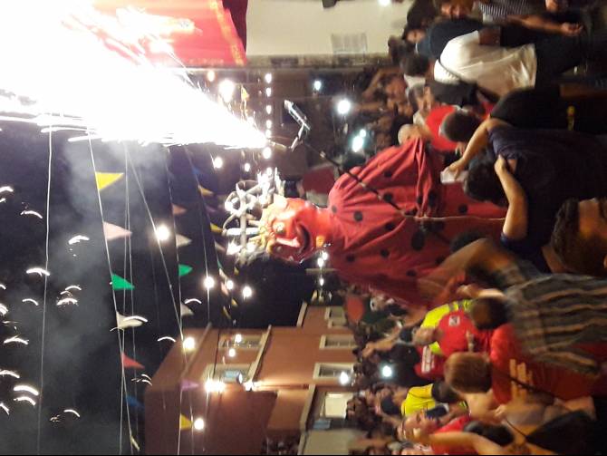 A las 00:00 horas llegará el acto más esperado de estas fiestas, el pasacalles de los Mascarones y Gigantes y Cabezudos, acompañados de la Fanfarria, seguido de un espectáculo pirotécnico con los corredores de fuego, tradicionales objetos accionados por la fuerza de los fuegos artificiales. Seguidamente, irrumpirá la figura del Diablo, escenificando a través de fuego la lucha entre el bien y el mal.