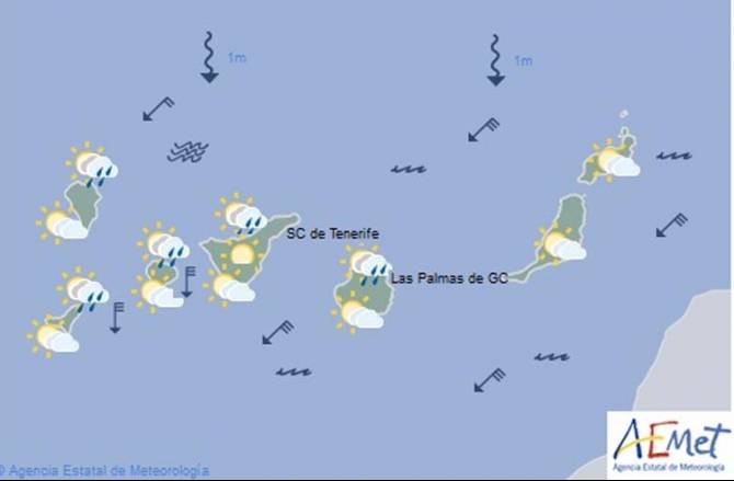 La previsión meteorológica en la isla de La Palma apunta a que en el norte y nordeste los cielos estarán muy nuboso; en el suroeste, intervalos nubosos. En el norte y nordeste, probables lluvias débiles.