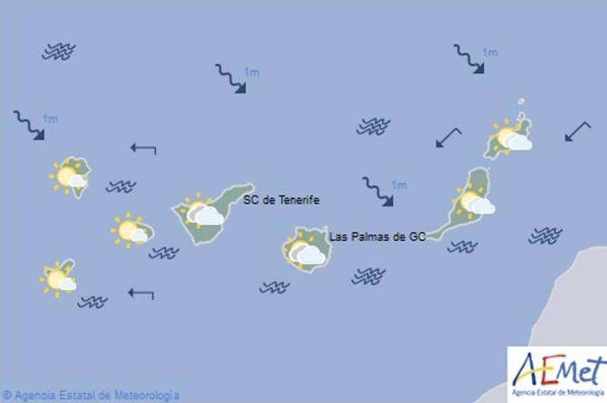 La previsión meteorológica para la isla de La Palma este martes apunta al predominio de cielos poco nubosos, con algunos intervalos matinales de nubes bajas en costas nordeste y este.