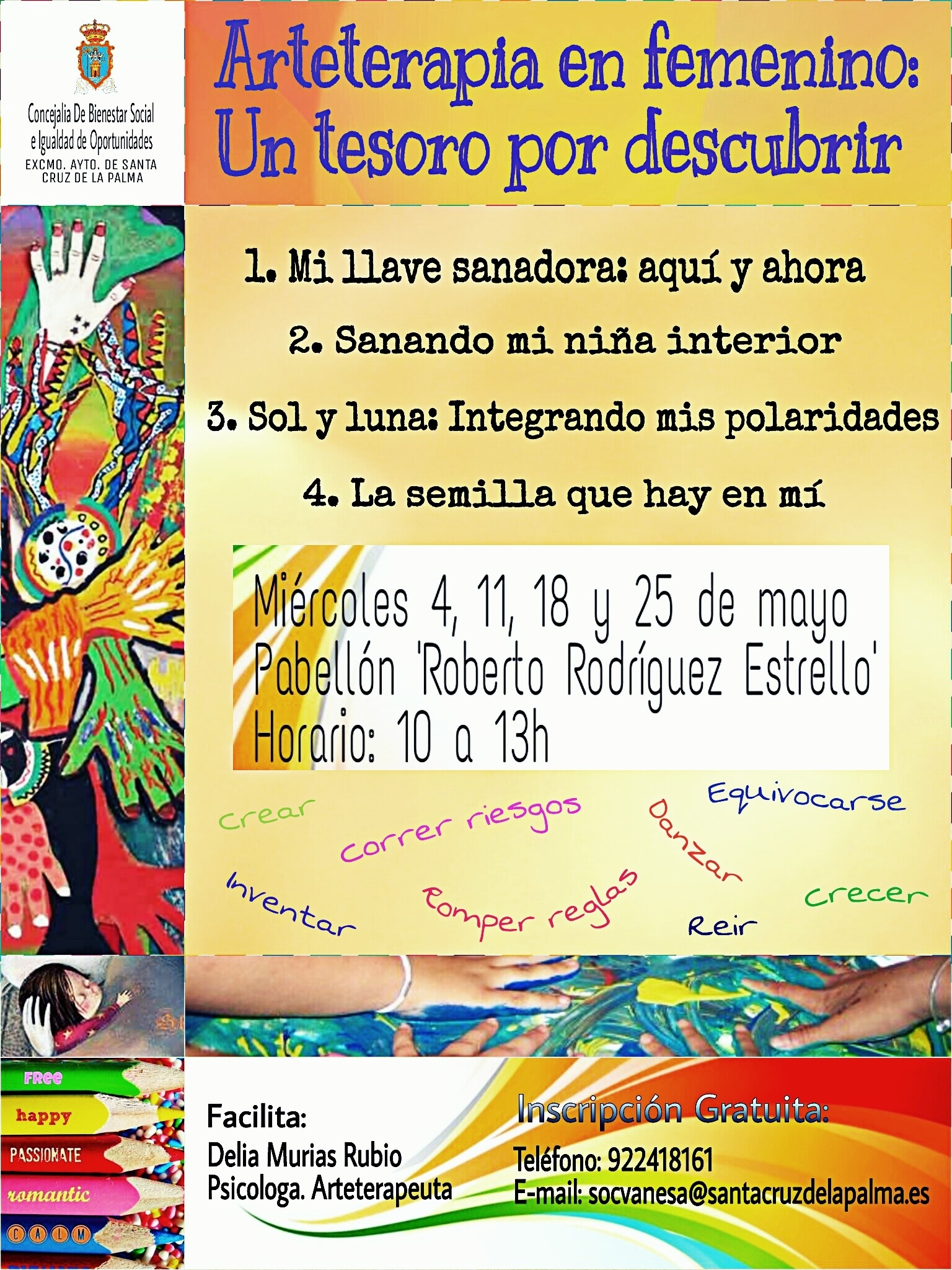 El Ayuntamiento de Santa Cruz de La Palma organiza el próximo mes de mayo el taller “Arteterapia en femenino: un tesoro por descubrir”, una propuesta dirigida a las mujeres del municipio que pretende favorecer el desarrollo personal a través de la creación artística.