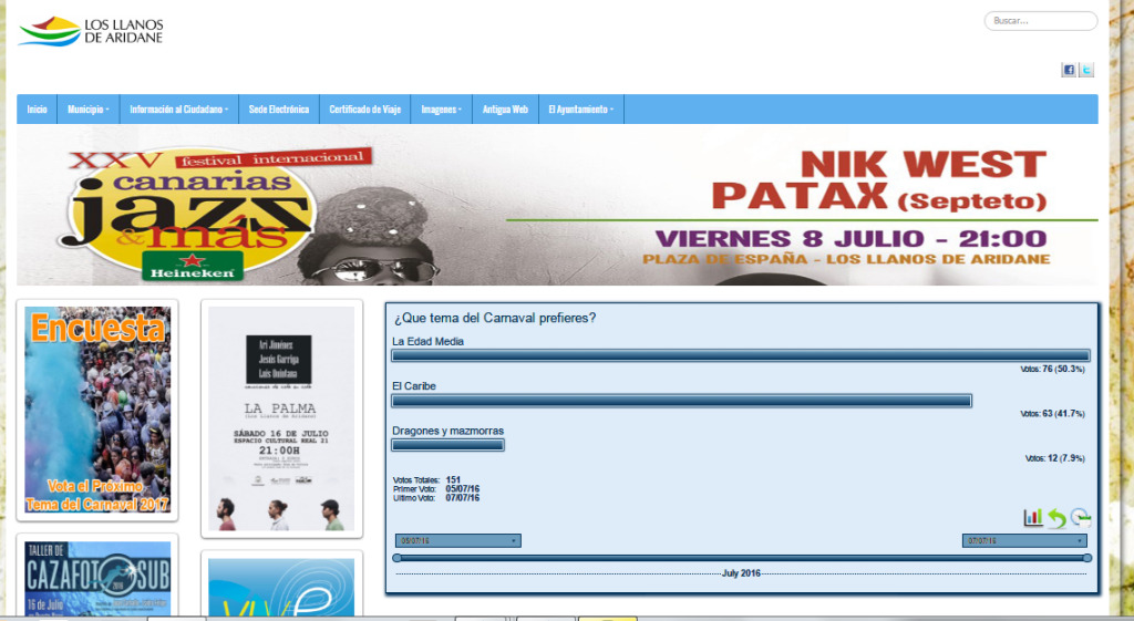 Las votaciones permanecerán abiertas hasta el próximo día 20 de julio. En tan sólo un día la web municipal www.aridane.org registró un centenar de votos.
