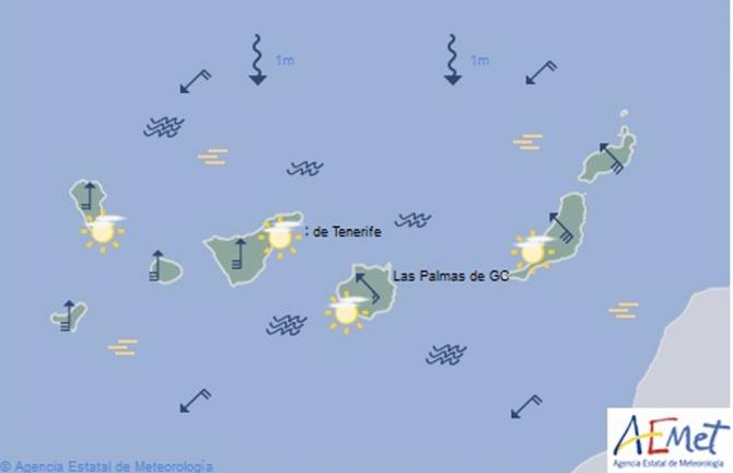 En costas, viento del nordeste, más intenso en costas sureste y punta noroeste; en costas suroeste y nordeste, predominio de las brisas.