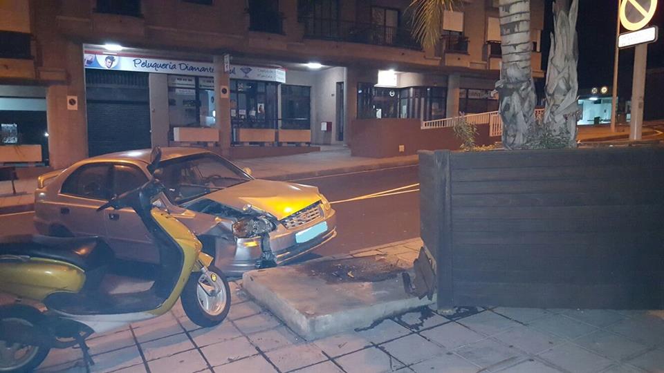 A pocos metros del cruce con la calle José López, y por causas desconocidas, el conductor perdía el control del vehículo, se subía en la acera e impactaba contra el mobiliario urbano de la capital insular.