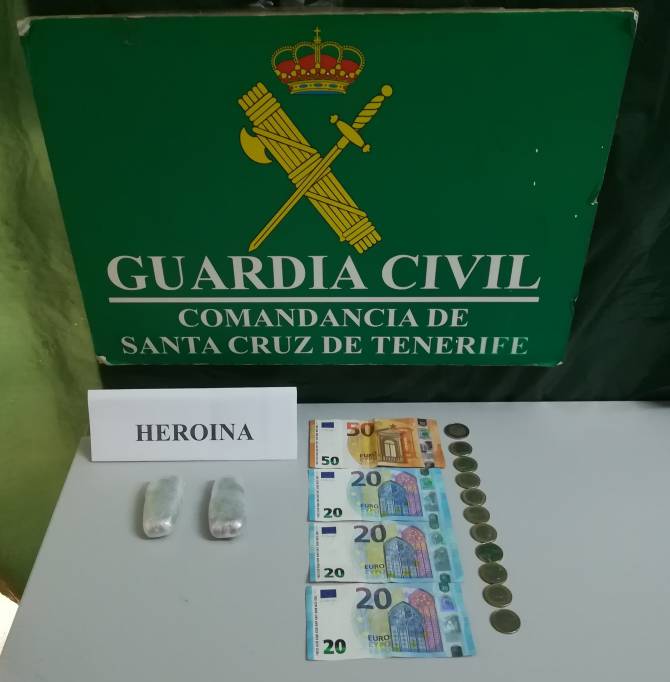 Agentes de la Guardia Civil pertenecientes al Puesto Principal de Santa Cruz de La Palma han detenido a un varón de 26 años de edad, vecino de Breña Alta, como presunto autor de un delito contra la salud pública, tráfico de drogas (heroína).