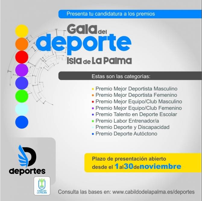 El Servicio de Deportes del Cabildo de La Palma, dirigido por Ascensión Rodríguez, publica las bases reguladoras para presentar candidaturas a la primera edición de la Gala del Deporte en la Isla, un evento que pretende reconocer el trabajo y la trayectoria de deportistas, clubes y entidades de La Palma.