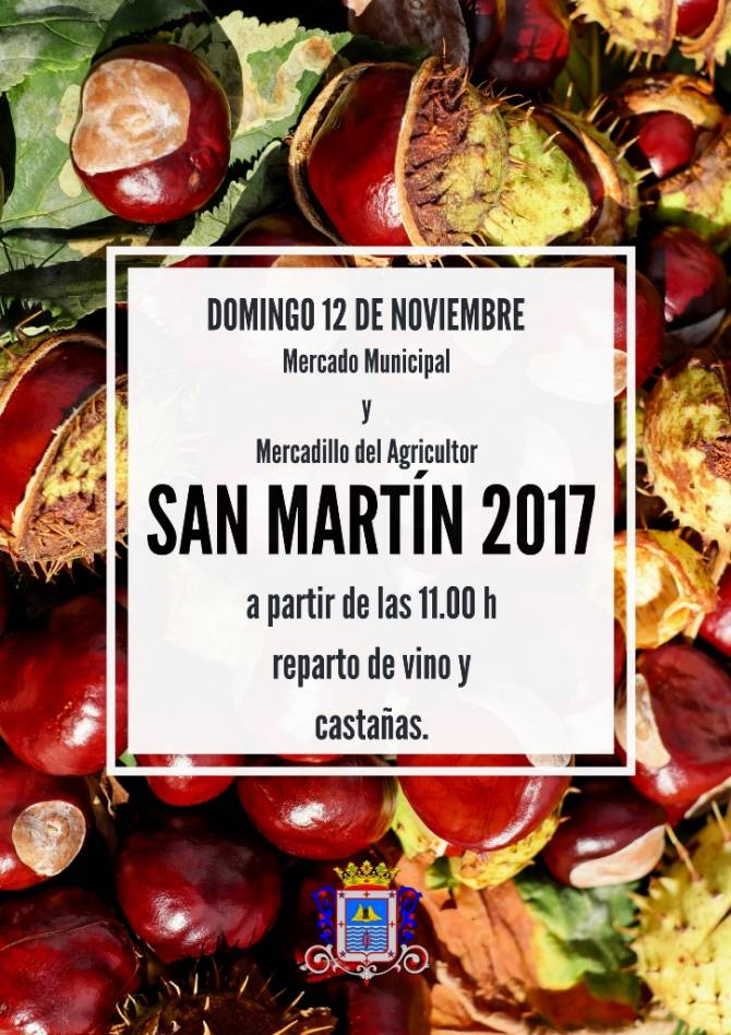 Los actos conmemorativos organizados por la concejalía de Fiestas del Ayuntamiento de Los Llanos de Aridane con motivo de la celebración de San Martín, continuarán el fin de semana, concretamente el domingo 12 de noviembre en el que el Mercadillo del Agricultor que tradicionalmente se celebra en la céntrica Avenida Doctor Fleming se desplaza a la Plaza del Mercado Municipal que, al igual que en años anteriores, abrirá sus puertas para sumarse a esta fiesta en la que, a partir de las 11:00 de la mañana, se repartirán gratuitamente vino y castañas.