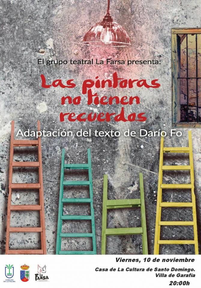 El ciclo de teatro Una isla en escena, organizado por el Cabildo de La Palma, continúa su programación este viernes, 10 de noviembre, con la representación de la comedia Las pintoras no tienen recuerdos en la Casa de la Cultura de Santo Domingo de Garafía. La asociación grupo de teatro La Farsa será la encargada de poner en escena esta obra, apta para todos los públicos, a partir de las 20:00 horas,
