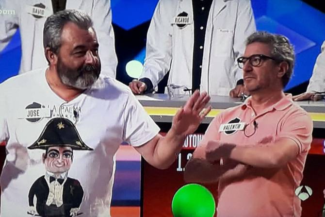 Vuelve a ser a través de una camiseta portada por alguien que se hizo famoso por su prolongada participación en el longevo ‘Saber y ganar’ de La 2. Además, con la peculiaridad de que habitualmente portaba camisetas alusivas a la isla de La Palma, y después de varios meses continúa en el programa ¡Boom! de Antena 3.