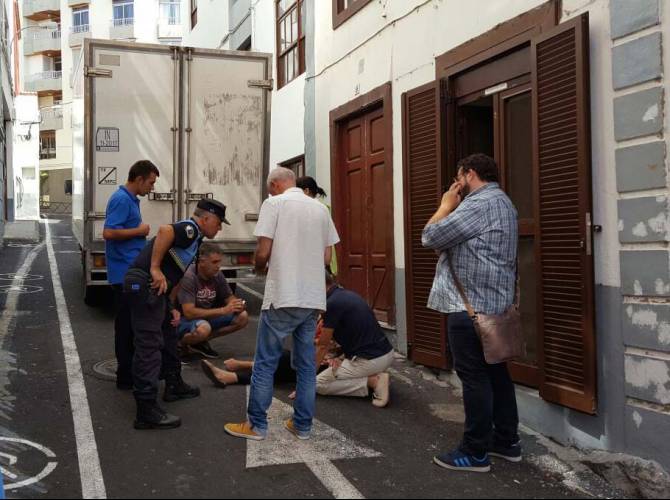 Rápidamente fue atendida por otros viandantes y la Policía Local, hasta la llegada de una ambulancia del Servicio de Urgencias Canario, que se hizo cargo del cuidado de la herida.