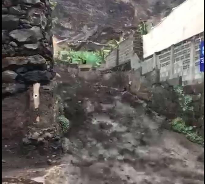 El barrio costero de El Remo, en Los Llanos de Aridane, está sufriendo por enésima vez los efectos de las fuertes lluvias registradas durante la mañana, provocando el corte de la carretera de acceso.