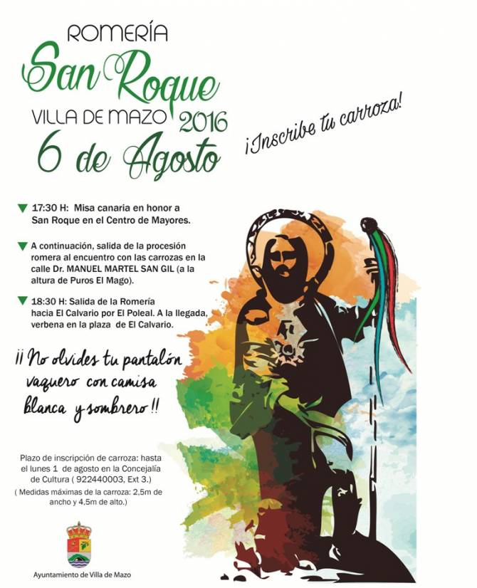 Villa de Mazo prepara una nueva edición de la Romería en honor a San Roque, que en esta ocasión se celebrará la tarde del próximo 6 de agosto, por su recorrido habitual.