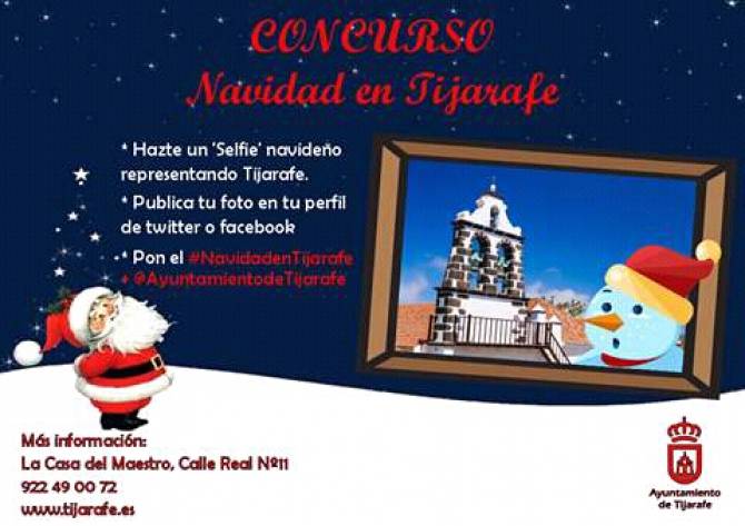La Concejalía de Turismo, Artesanía y Medio Ambiente del Ayuntamiento de Tijarafe organiza por primera ver el concurso “Navidad en Tijarafe”, una entretenida iniciativa en la que puede participar todo aquel que lo desee compartiendo un simpático selfie navideño en lugares característicos del municipio.