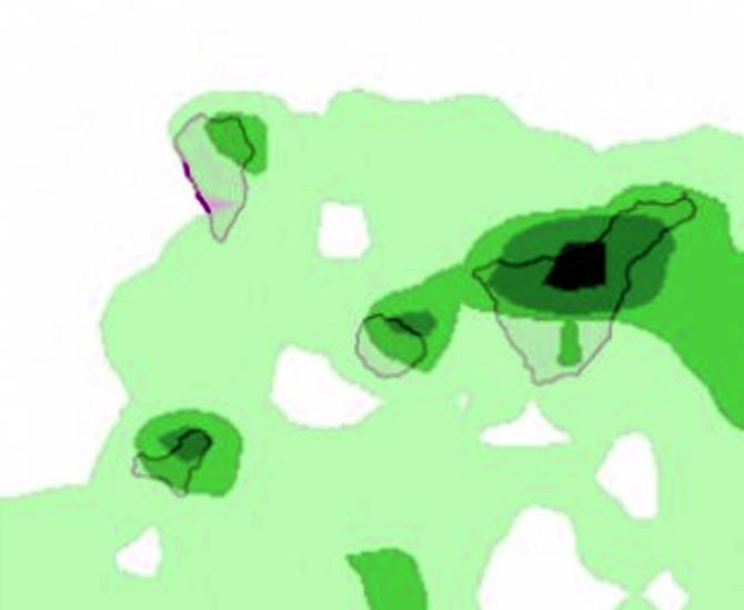 Temperaturas mínimas con pocos cambios y máximas en ligero a moderado descenso, siendo más significativo en medianías y zonas altas, situándose entre 21 y 16 grados centígrados.