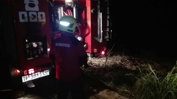 Bomberos del Parque de La Grama consiguieron controlar y extinguir durante la noche un fuego que se inició ceca de una zona de viviendas en La Estrella, en Breña Alta.