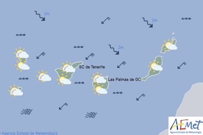Viento del nordeste, que será fuerte en El Paso y extremos sudeste y noroeste a primeras horas cuando no se descarta alguna racha localmente muy fuerte.
