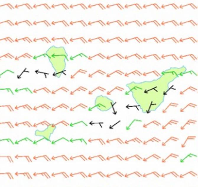 Viento del nordeste moderado con intervalos de fuerte en puntas noroeste y sureste y en El Paso, en donde las rachas pueden alcanzar los 60 km/h, girando a este flojo a moderado por la mañana.
