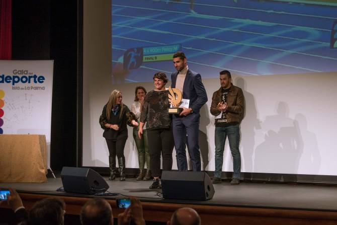 La Gala del Deporte fue presentada por la periodista Magaly Cáceres y el copiloto palmero Víctor Pérez, que obtuvo un reconocimiento especial durante la ceremonia por su trayectoria profesional que este año ha alcanzado los 25 años.