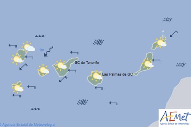 Viento del este y nordeste, más intenso en los litorales norte y sur.